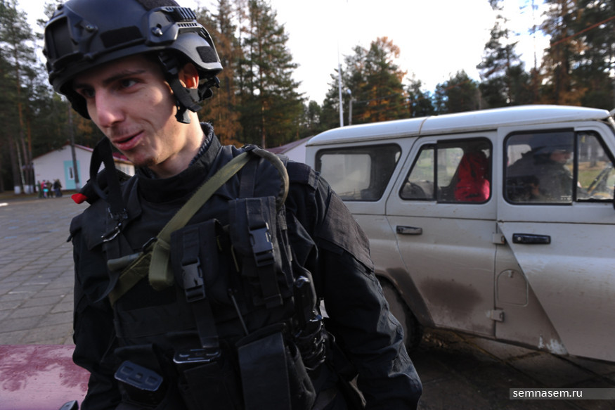 На улице вожатые и гости разыгрывают сцену с захватом УАЗа, которая ожидаемо заканчивается спасением заложников. Дмитрий Безгодов провожает нас к выходу.