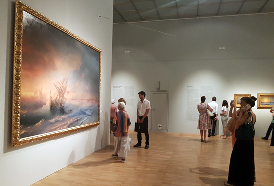 Выставка «Иван Айвазовский. К 200-летию со дня рождения» открылась в ГТГ в конце июля и продлится до 20 ноября. На ней представлены 120 кратин и 55 графических произведений, изделия из фарфора, архивные документы, макеты кораблей, морские навигационные приборы.