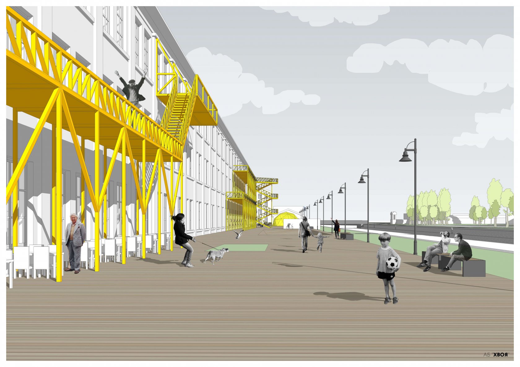 В прибрежном районе Васильевского острова «Гавань» откроется парк Взморье, задуманный как творческий квартал и культурно-досуговая зона на территории бывшего завода «Прибой».