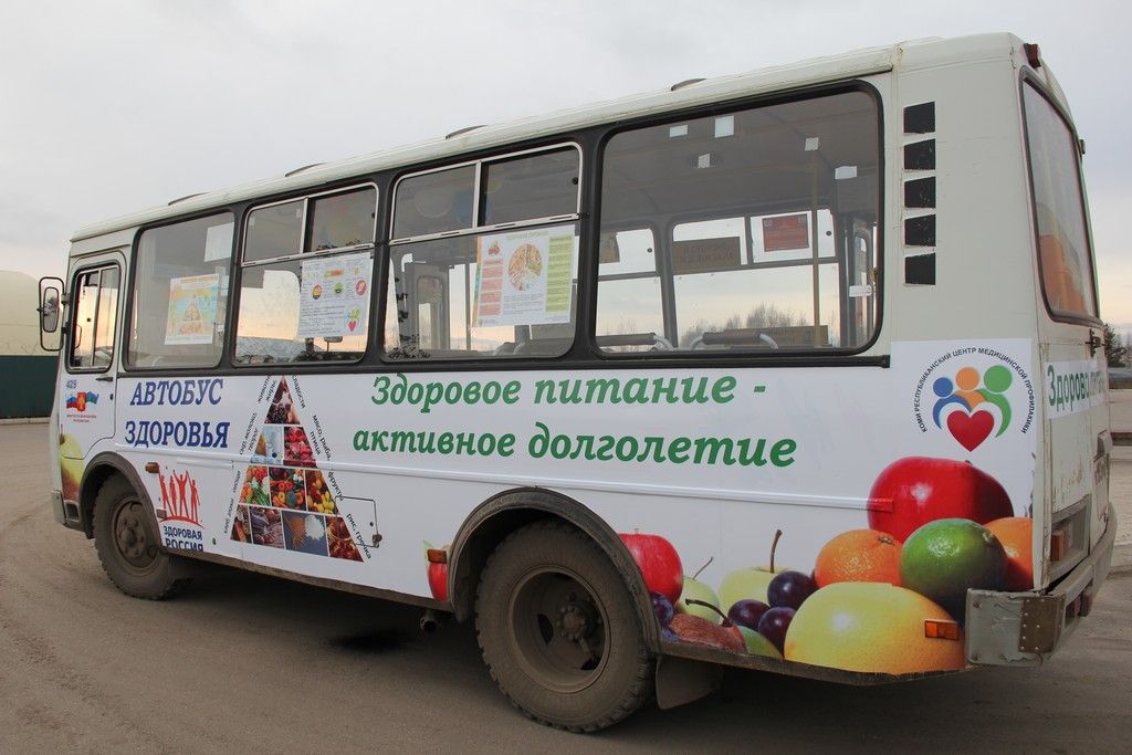 В Сыктывкаре запустили специальный «автобус здоровья». На деле это обычный маршрутный ПАЗ, на который нанесли надписи, пропагандирующие здоровое питание: «Здоровое питание — активное долголетие» и «Я есть то, что я ем! (Гиппократ)».