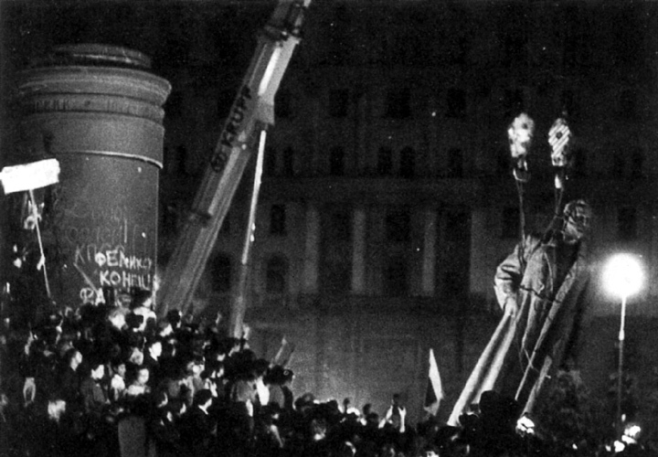 Снос памятника Александру III в Москве. 1918 год Принцип «фигура/фон» пронизывает наше повседневное восприятие города: мы мыслим себя на фоне города, наподобие фигурок стаффажа в классическом пейзаже. Стабильно функционирующий, воспроизводящий себя как систему город постоянно поддерживает разделение своих слоев. Между этими слоями, разумеется, возможны взаимодействия и смешения, но только по определенным установленным законам, которые и составляют порядок города. Ключевые имена этого закона записаны на памятниках. Но когда сносы памятников в ходе революции из стихийных становятся нормативными, можно говорить о том, что они стали частью новой городской системы, — например, когда на Украине «ленинопад» стал «декоммунизацией».