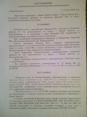 В то же время стало известно, что на Мамедова 11 октября было заведено административное дело об оскорблении главы управления жилищной политики администрации города Нины Динковой (по первой части 5.61 КоАП). В постановлении о возбуждении дела говорится, что 29 сентября Мамедов высказал в адрес Динковой «оскорбления в неприличной форме, чем унизил ее честь и достоинство» в ее кабинете в здании администрации. Рассмотрение дела было перенесено на 14 ноября после того как Динкова, подавшая на Мамедова заявление об оскорблении, 26 октября не явилась в суд.