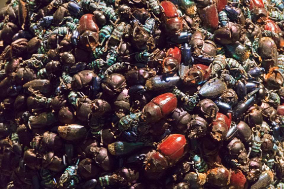 Перед походом на выставку вас по всем возможным каналам предупреждают, что художник — потомок Жана-Анри Фабра, крупного энтомолога. Потому что первое впечатление от выставки все же нуждается в оправдании. Как будто посмотрели спецвыпуск «В мире животных» из жизни насекомых (вернее, из смерти). Нечто среднее между иллюстрациями басен Крылова и «Человеком-муравьем» Marvel. Даже про влияние книжки о болезнях ротовой полости на Фрэнсиса Бэкона перед выставкой в том же Эрмитаже вспоминали не так настойчиво.