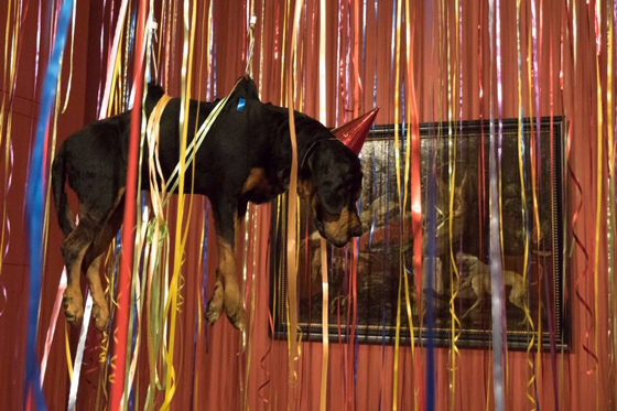 © Государственный Эрмитаж Апофеоз экспозиции Главного штаба приходится на «Умбракулум», «Карнавал мертвых дворняг» и симметричную экспозицию с мертвыми же котиками. Какая ирония — пока вся страна обсуждает хабаровских девочек-живодерок, Фабр упоенно развешивает чучела животных под высоким потолком штаба. Вокруг — ленточки и конфетти, неупокоенные дворняги наряжены в карнавальные шапочки. В этом можно увидеть натюрмортное восприятие в сочетании с атеизмом и фламандскими традициями, но для массового зрителя без чувства черного юмора «Карнавал» — просто странное извращение, которое кто-то пустил в Эрмитаж. А «Умбракулум» и вовсе надо расшифровывать долго и последовательно. Какие-то привидения в балахонах из кружевных костяных пластин, летающие чудеса ортопедии цвета разлившейся нефти (надкрылья златки, кажется, универсальный материал). Так мы подходим к еще одному «острому углу» работ Фабра. Умбракулум в обиходном значении — желто-красный зонтик из шелка. В символическом измерении это обозначение базилики, а базилика в католицизме — титул избранных церквей. Мать Яна Фабра была ревностной католичкой, сам он — «к счастью, атеист», что позволяет бессовестно жонглировать символикой. Чучела животных, черепа, кости и остальные вещественные свидетельства смерти для него — лучший материал. И цель экспонатов — вовсе не «размышление о смерти», а ее констатация в понимании атеиста, своеобразный фатализм безбожника.