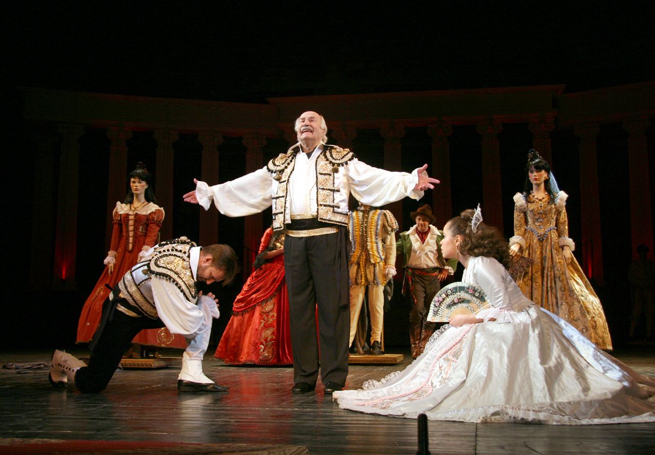 Почти 25 лет я был директором театра, тогда эта должность называлась начальник Театра Советской Армии. Владимир Михайлович служил в нашем театре с 1945 года — он пришел после войны, после съемок в фильме [Ивана] Пырьева «Свинарка и пастух», где он сыграл вместе с [Мариной] Ладыниной. Его все знали по этому фильму. В 1946 году вышел известный всему театральному сообществу спектакль «Учитель танцев» по Лопе де Веге, который шел более 20 лет, и больше тысячи раз Зельдин выходил в нем на сцену. Это легендарное исполнение.