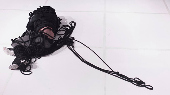 Анна: Да, безусловно. Несмотря на то что мы — дуэт, мы работаем также и с другими художниками. Для этого перформанса звуковик записал шум веревки, скользящей по телу, и звук тела, трущегося об веревку. Свет тоже играет определенную роль, мы используем сложные световые конструкции. Наши работы требовательны к публике: ведь то, что ты видишь, на самом деле не то, что ты видишь.