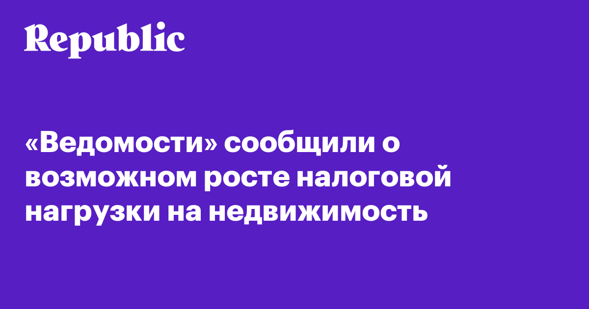 «Ведомости» сообщили о возможном росте налоговой нагрузки на недвижимость