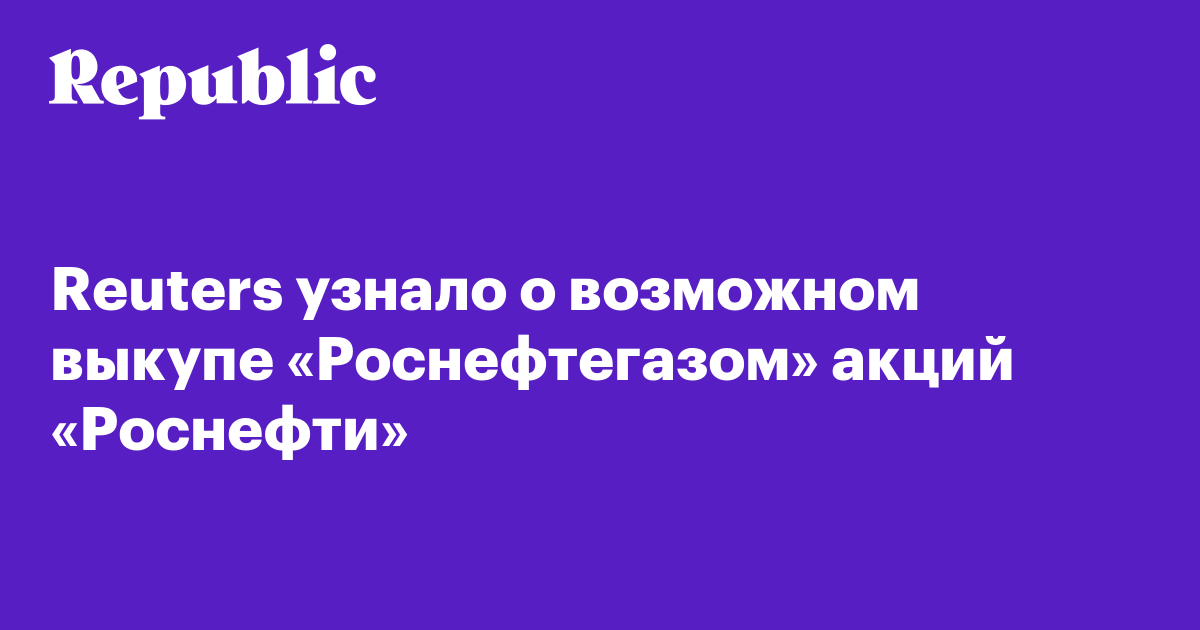 Reuters узнало о возможном выкупе «Роснефтегазом» акций «Роснефти»