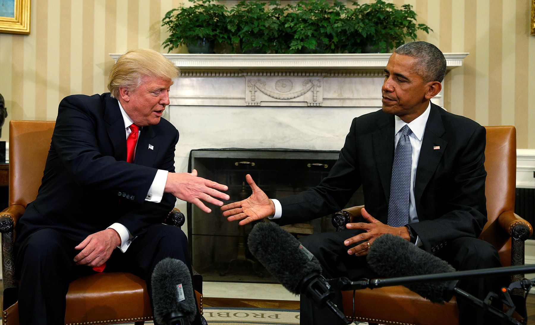 Дата10.11.2016АвторСкрытИсточникМедузаСохранённая копияInternet ArchiveOriginal MaterialShow translationДональд Трамп жмет руку Бараку Обаме. ФотографияФото: Kevin Lamarque / Reuters / Scanpix / LETA Только что избранный президент США Дональд Трамп впервые встретился с действующим президентом Бараком Обамой. Про их встречу можно прочитать здесь.