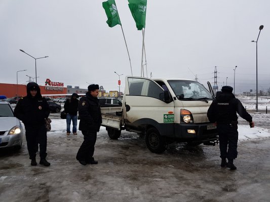 На у торгового центра Мега Химки 11 ноября был задержан член профсоюза водителей-профессионалов Сергей Айнбиндер, припарковавший на стоянке у центра небольшой грузовик с флагами. Как сообщили ОВД-Инфо в Объединении перевозчиков России, Айнбиндер был доставлен в ОВД Химки.