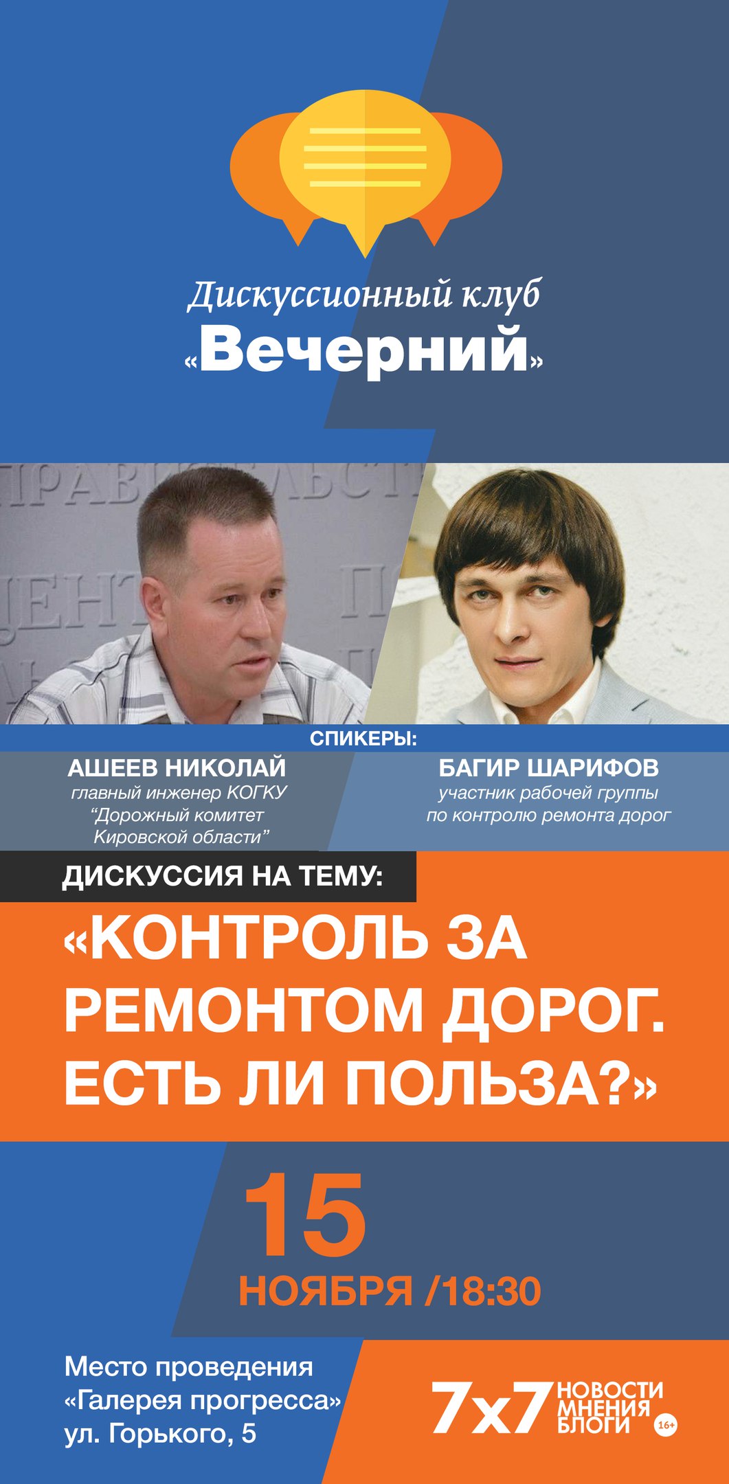 Дискуссионный клуб «Вечерний» пройдет 15 ноября. Тема: «Контроль за ремонтом дорог. Есть ли польза?»