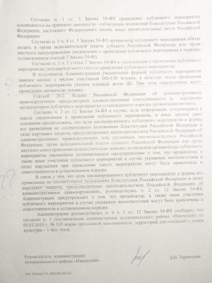 Районная администрация также предупредила организатора о возможном «привлечении к ответственности в установленном порядке».