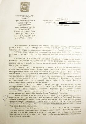 Администрация Ижемского муниципального района республики Коми отказалась согласовать запланированный на 14 ноября митинг против слияния регионального министерства природы и министерства промышленности, назвав это требование противоречащим Конституции. Соответствующий документ опубликовала 12 ноября «Открытая Россия».