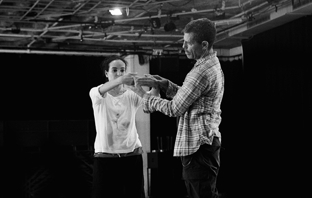 Диана Вишнева и Охад Нахарин на репетиции B/olero Диана Вишнева Фестиваль, закрутившийся в 2013 году вокруг состязания молодых хореографов, вырос в шестидневный форум с воркшопами, кинопоказами и красивой театральной программой. Хозяйка — Диана Вишнева, балетная self-made-woman, имеющая репутацию богини классического олимпа и отчаянного экспериментатора одновременно, — не просто царственная покровительница актуального искусства, но активное действующее лицо. На этот раз Вишнева представит российскую премьеру балета «B/olero». Три года назад она танцевала под оркестровый триллер Равеля в легендарном спектакле Мориса Бежара, теперь вновь столкнется с этой музыкой (в анимешной midi-аранжировке) в постановке Охада Нахарина. Впрочем, «постановка» — неточное слово: Нахарин учит выращивать движение из своего тела и не думать, красив ли ты в это время, осознавать в пространстве себя и другого, уметь деликатно повести другого за собой. Такова, в очень грубом описании, придуманная Нахарином техника gaga, род эзотерической импровизации.