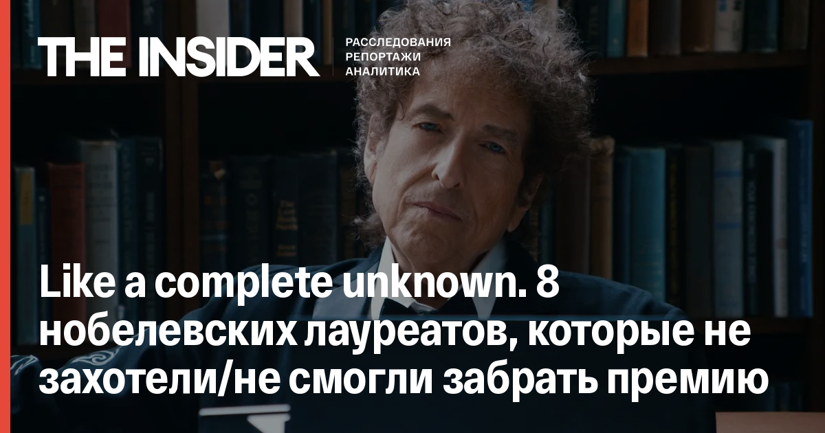 Присуждение премии по литературе Бобу Дилану стало одним из самых сенсационных решений Нобелевского комитета. Однако певец поразил всех еще больше, заявив, что не сможет приехать на церемонию вручения в Швецию в декабре. Свой отказ он объяснил тем, что его связывают некие «ранее данные обязательства». Шведская королевская академия была немало удивлена, но, поразмыслив, решила, что раз Дилан не может забрать награду сам, премия (а это ни много ни мало $1,1 млн) отправится к нему... на концерт в Стокгольме весной следующего года. В связи с этой необычной историей The Insider вспоминает других нобелевских лауреатов, которые не захотели или не смогли забрать свою награду.