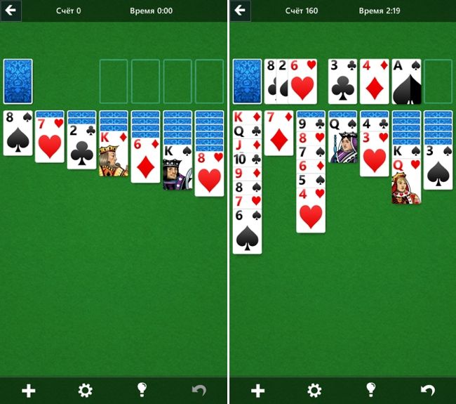 «Косынка» в приложении называется «Klondike», но это та же игра, что была еще на Windows XP. И она с той же легкостью съедает ваше время, как это происходит на компьютерах.