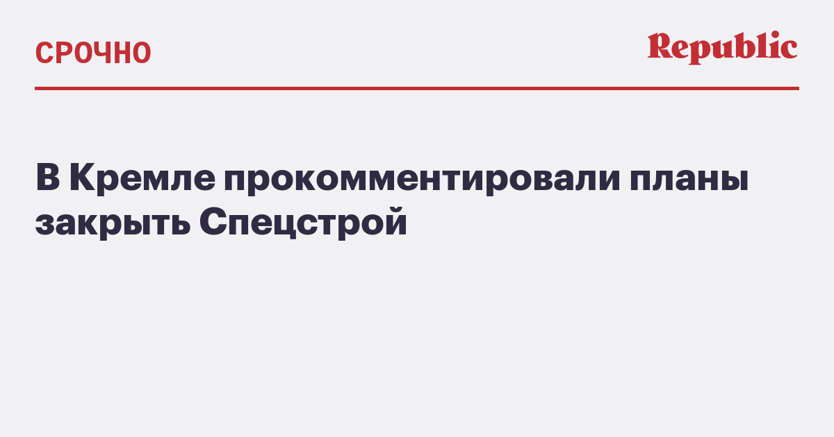 Ранее 23 ноября газета «Коммерсантъ» сообщила, что президент России Владимир Путин принял решение упразднить Спецстрой. По данным издания, активы агентства перейдут Минобороны, а строительство стратегических объектов ведомство будет курировать напрямую.