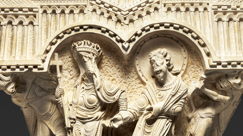 На выставке мы видим лучшие образцы паломнической архитектуры. Каждый ларец-реликвиарий – миниатюрный собор, собранный из драгоценных камней, отделанный эмалью и украшенный золотом. Другую архитектуру представляют капители колонн с каменной скульптурой из возведенных во время Крестовых походов церквей. Святые на них улыбаются небесам и зовут за собой прихожан.