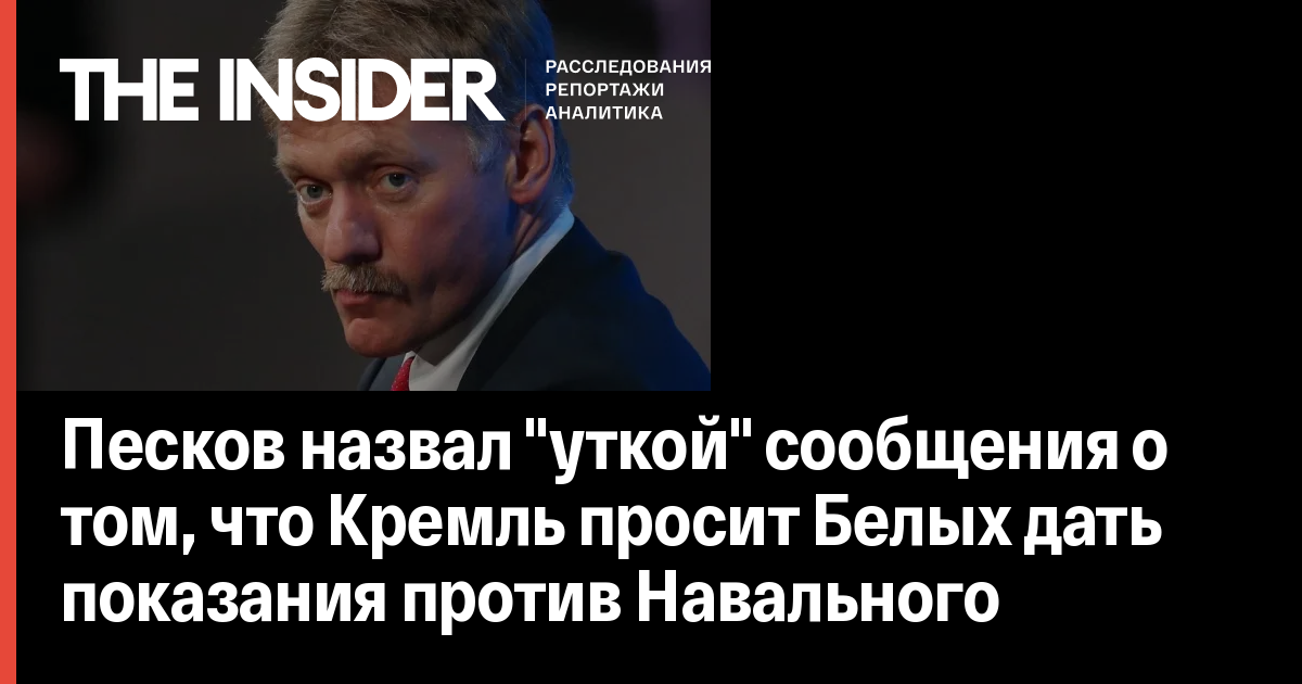 Песков назвал "уткой" сообщения о том, что Кремль просит Белых дать показания против Навального