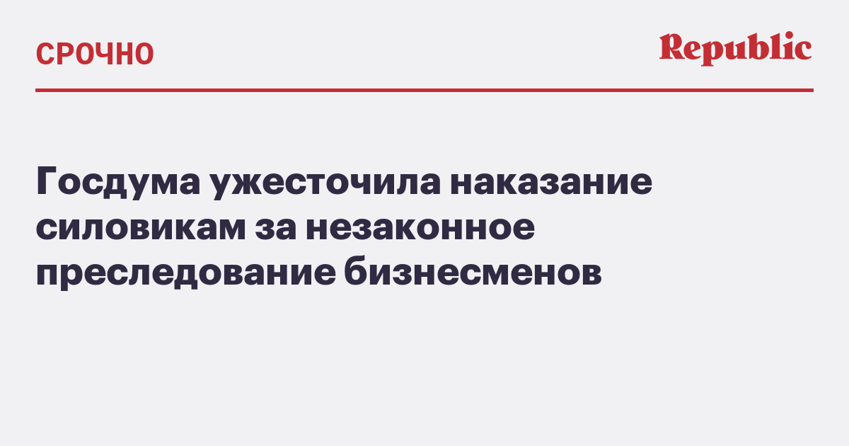 Госдума ужесточила наказание силовикам за незаконное преследование бизнесменов