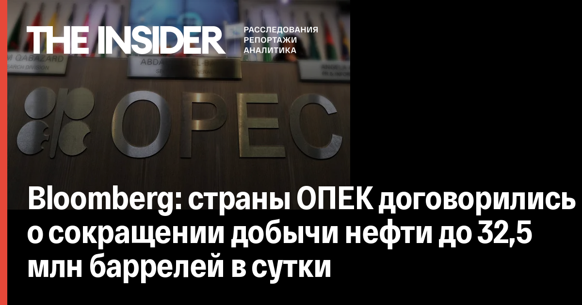 Bloomberg: страны ОПЕК договорились о сокращении добычи нефти до 32,5 млн баррелей в сутки