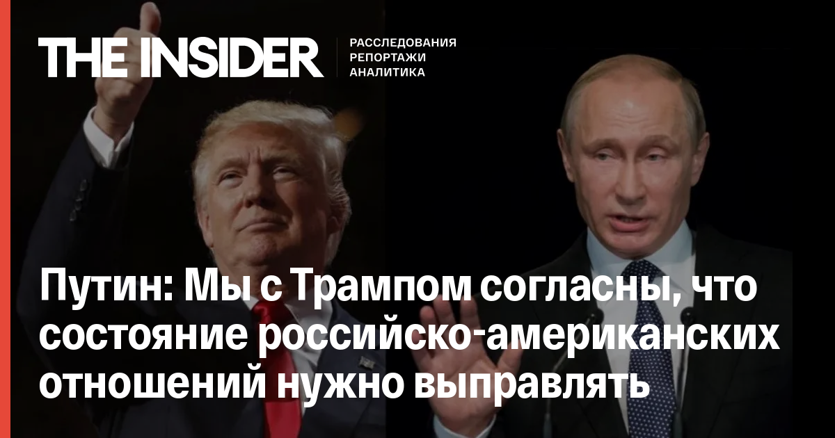 «В ходе недавнего телефонного разговора с господином Дональдом Трампом мы сошлись во мнении, что нынешнее неудовлетворительное состояние российско-американских отношений, безусловно, нужно выправлять. Как я уже говорил, наша страна готова пройти свою часть пути», — сказал Путин.