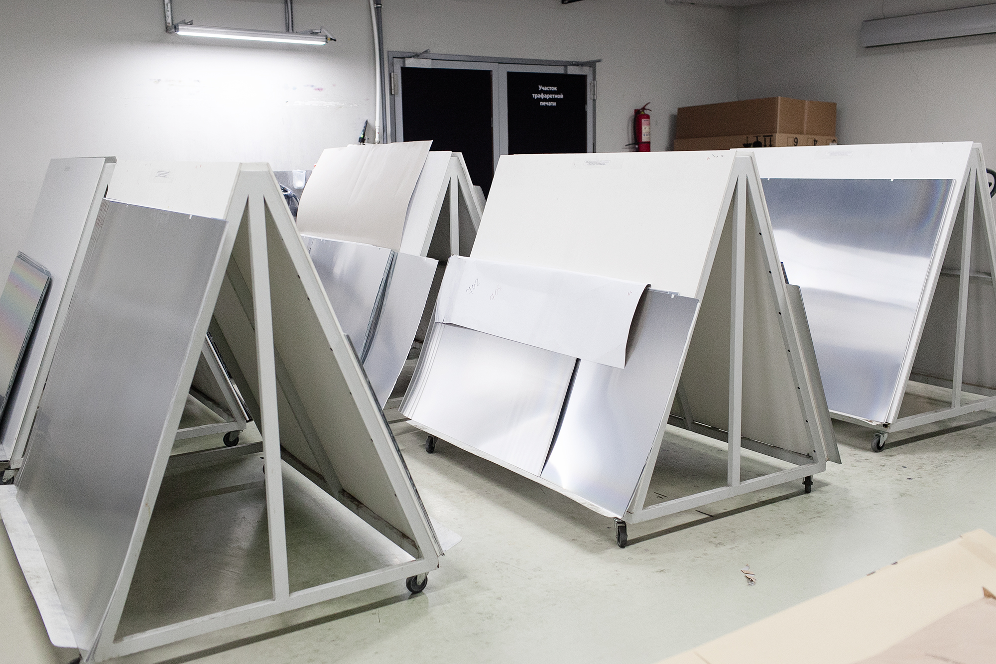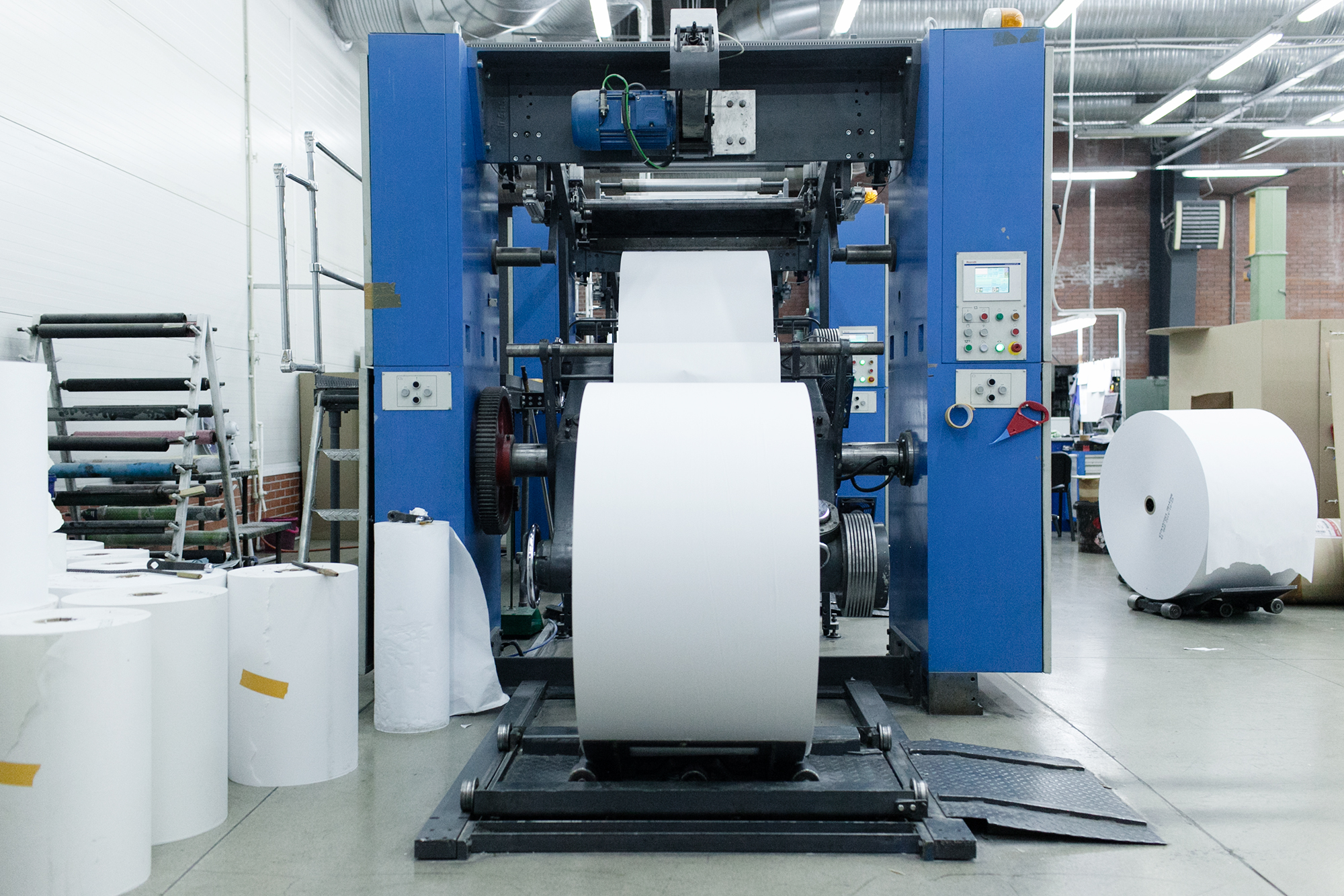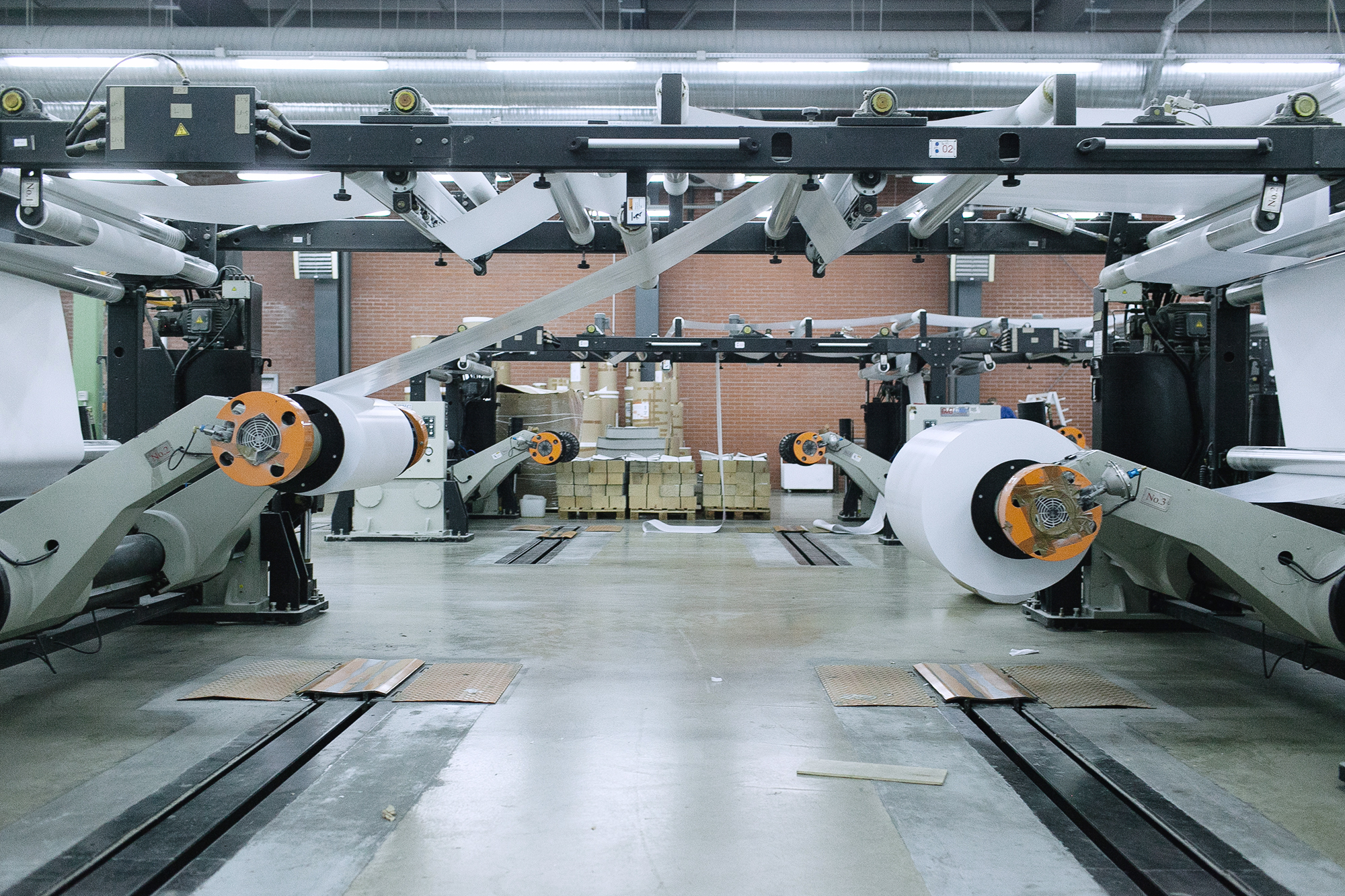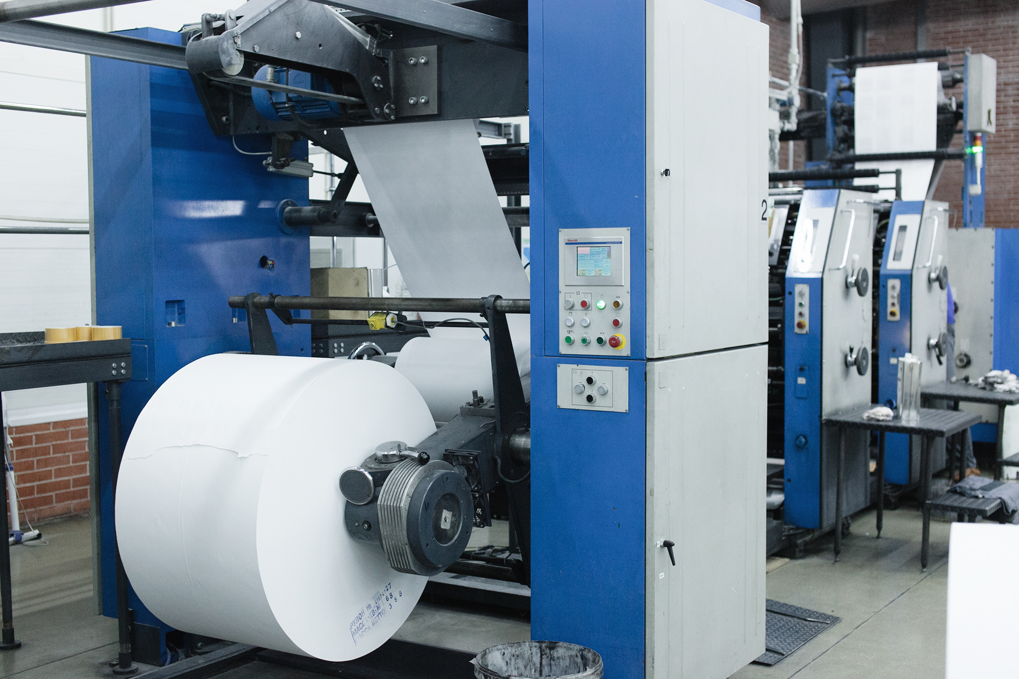 Фото: Андрей Заплатин Бумага будущей книги изначально подается в цех в «ролях» — рулонах диаметром и высотой около метра. Далее бумага флатуется, то есть режется на нужный формат листа во флаторезках — агрегатах, которые разматывают роль, нарезая листы нужного формата и в необходимом количестве. В зависимости от уровня влажности в помещении бумага может по-разному впитывать краску, а значит, по-разному вести себя при печати. И поэтому в печатном цехе поддерживается строгий температурно-влажностный режим — под потолком беспрестанно пышут водяным паром несколько десятков увлажняющих форсунок.
