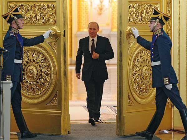 Глава государства выступает в Георгиевском зале Большого Кремлевского дворца, где собрались около тысячи человек: члены нижней и верхней палат российского парламента, члены правительства, руководители регионов и спикеры региональных законодательных собраний, главы конфессий.