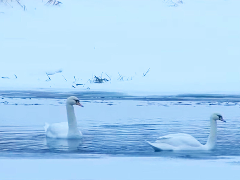 В Подмосковье готовятся спасать из полыньи двух белых лебедей