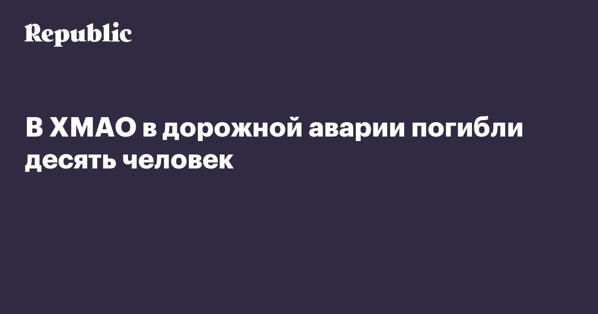 МВД, уточняет «Интерфакс», подтвердило гибель десятерых человек. Авария произошла на 926-м километре автодороги Тюмень – Ханты-Мансийск, столкнулись автобус, два легковых автомобиля и грузовик.