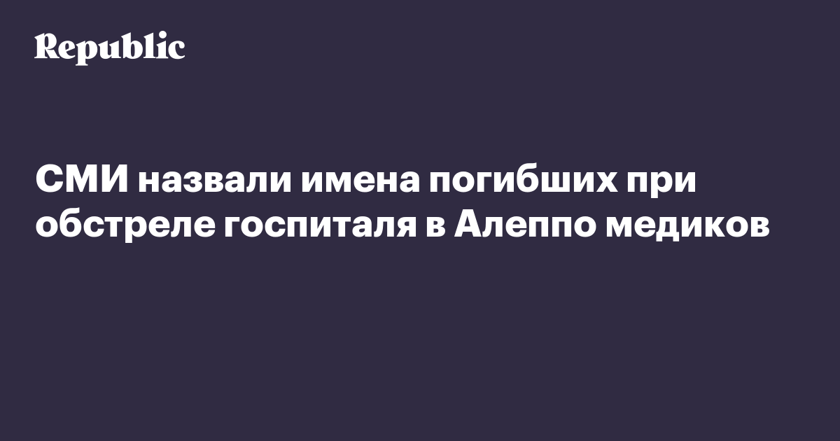 СМИ назвали имена погибших при обстреле госпиталя в Алеппо медиков