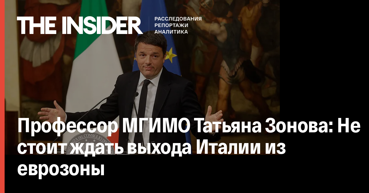 Профессор МГИМО Татьяна Зонова: Не стоит ждать выхода Италии из еврозоны