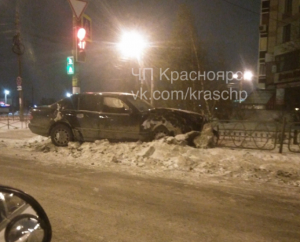 В Красноярске на одном из перекрестков мкрн Взлетка иномарка, выехав на красный, протаранила автомобиль.