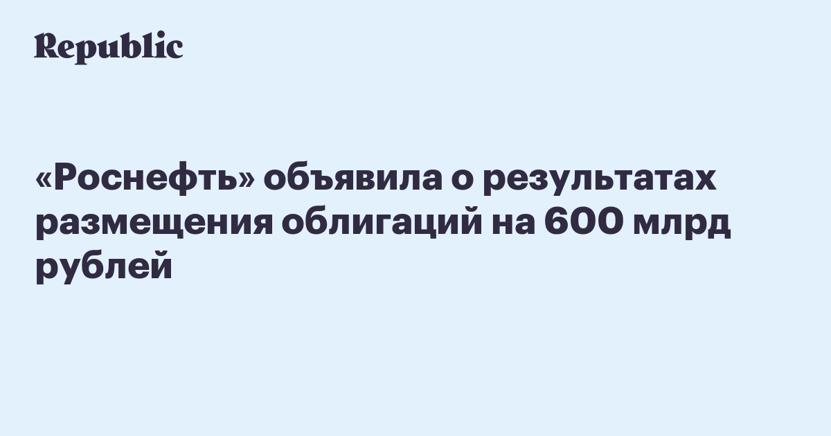 «Роснефть» объявила о результатах размещения облигаций на 600 млрд рублей