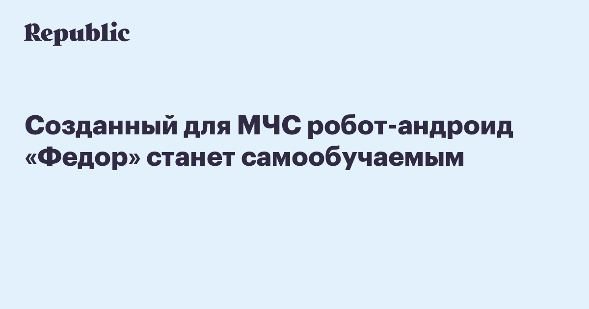 Российский робот-андроид «Федор», которого создали для МЧС России, получит способности к самообучению. Об этом ТАСС сообщил гендиректор компании-разработчика робота «Андроидная техника» Александр Пермяков.
