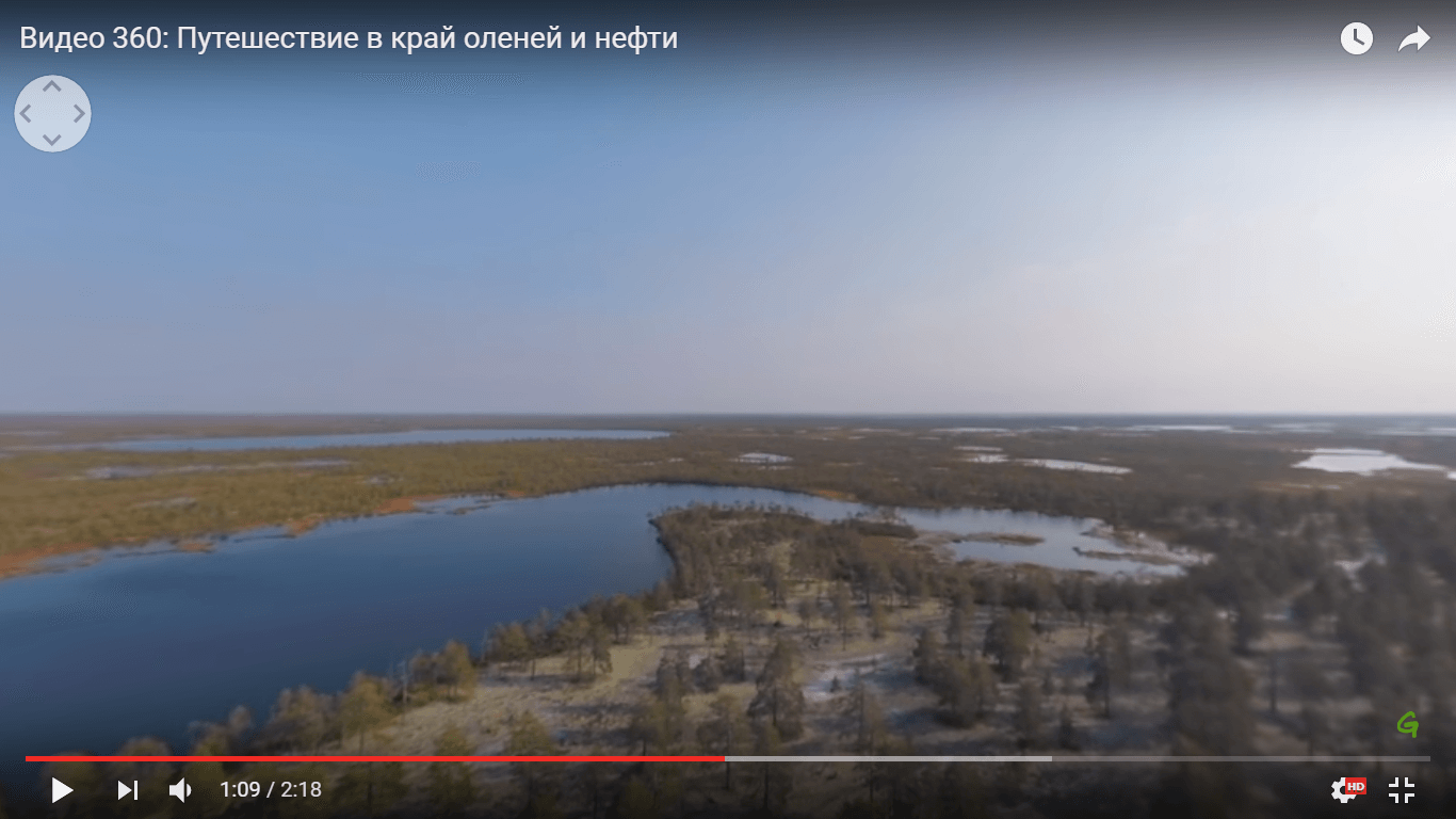 «Гринпис» России создал короткометражный фильм в формате 360° под названием «Путешествие в край оленей и нефти». Его сняли на Крайнем Севере России. Авторы фильма хотят привлечь внимание людей к экологическим проблемам с помощью виртуальной реальности.