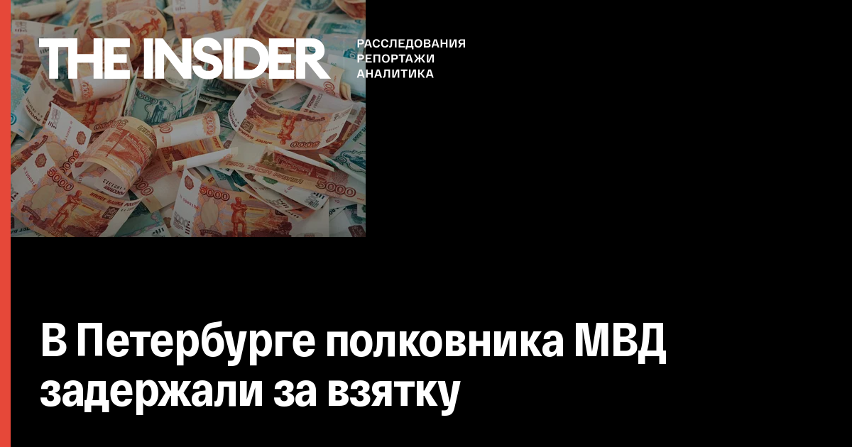 Управление ФСБ по Петербургу и Ленобласти задержало руководителя северо-западного подразделения Главного управления собственной безопасности МВД. Как сообщает «Фонтанка» со ссылкой на источники, полковника Юрия Тимченко задержали в ночь на 9 декабря при получении части взятки в размере 100 млн рублей.