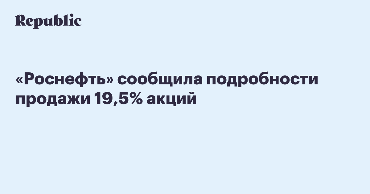 «Роснефть» сообщила подробности продажи 19,5% акций
