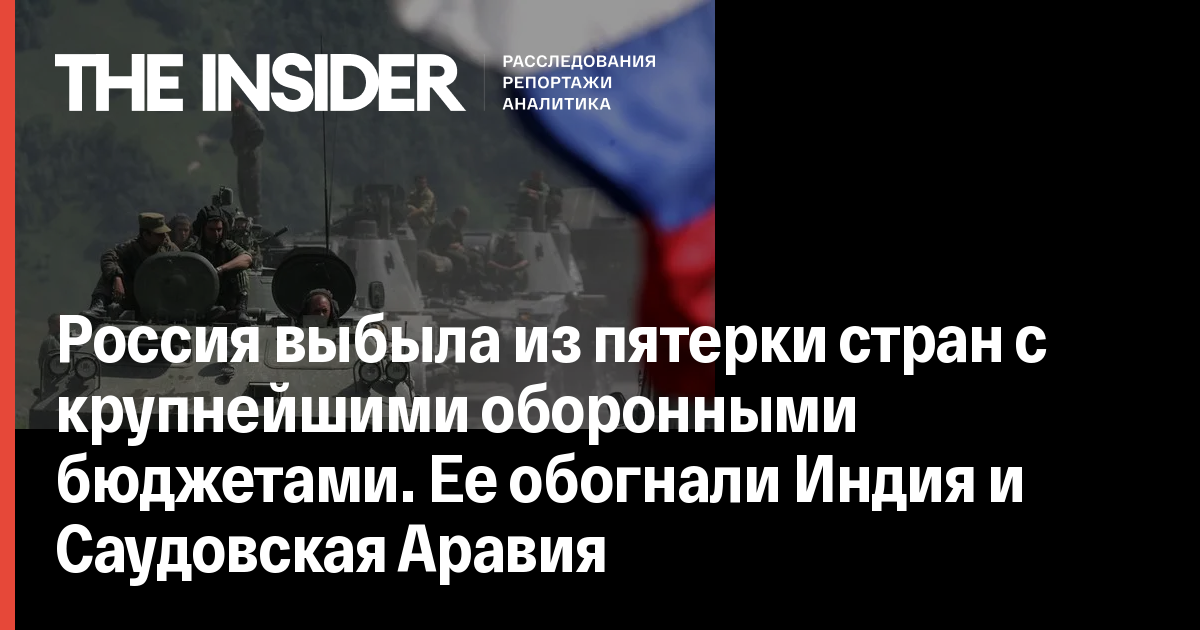 Россия выбыла из пятерки стран с крупнейшими оборонными бюджетами. Ее обогнали Индия и Саудовская Аравия
