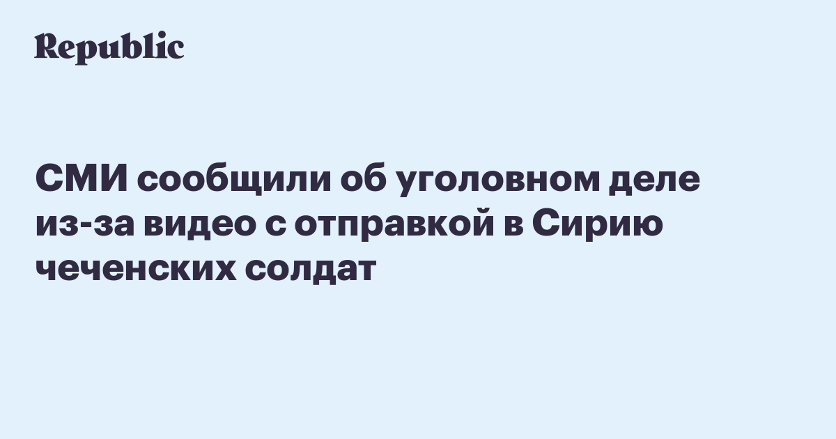Появление в интернете видеоролика, где якобы показана подготовка к отправке чеченских солдат в Сирию, стало поводом для уголовного дела о разглашении информации. Об этом сообщает «Росбалт».
