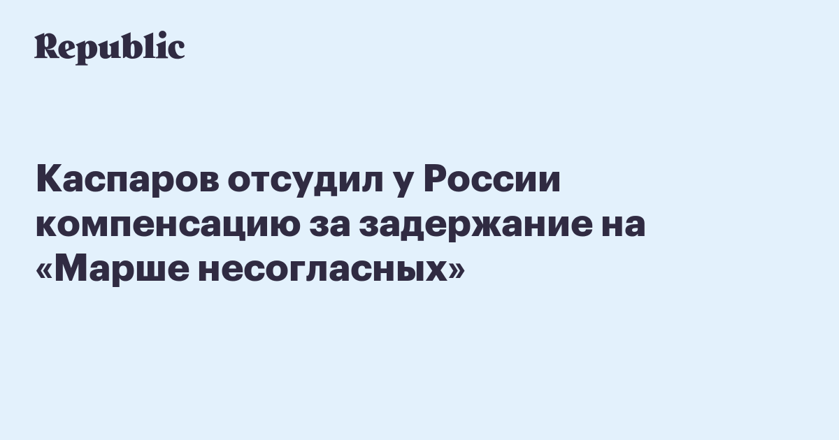 Европейский суд по правам человека (ЕСПЧ) обязал Россию выплатить шахматисту Гарри Каспарову €8 тысяч за задержание на «Марше несогласных» в 2007 году. Об этом говорится в решении, опубликованном на сайте суда.