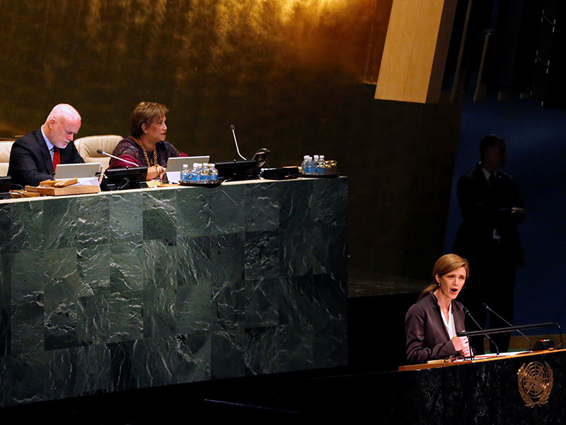 В ходе выступления Пауэр заявила, что ситуация в Алеппо "встанет в один ряд" с событиями в мировой истории, которые "определяют современное понимание зла" и останутся пятном на совести международного сообщества. К ним она, в частности, отнесла газовую атаку против иракских курдов в 1988 году, геноцид в Руанде в 1994 году и резню в Сребренице в 1993 году.