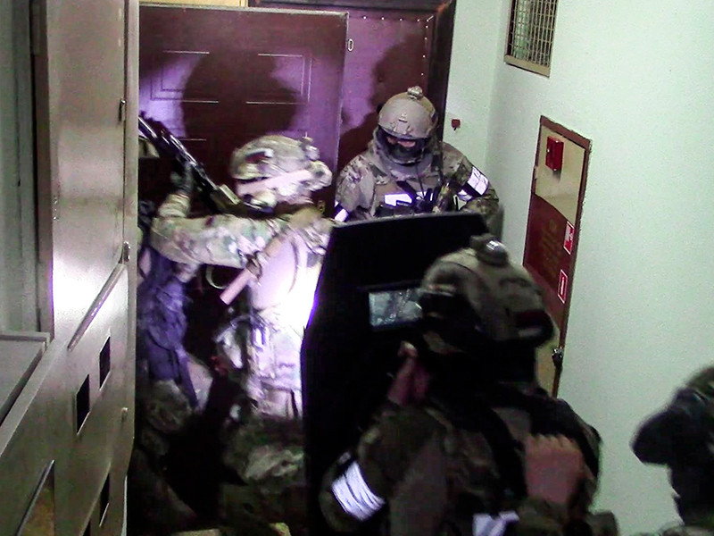 Позже ФСБ обнародовало видео, на котором показан штурм квартиры, где находились подозреваемые, а также изъятое у них оружие.