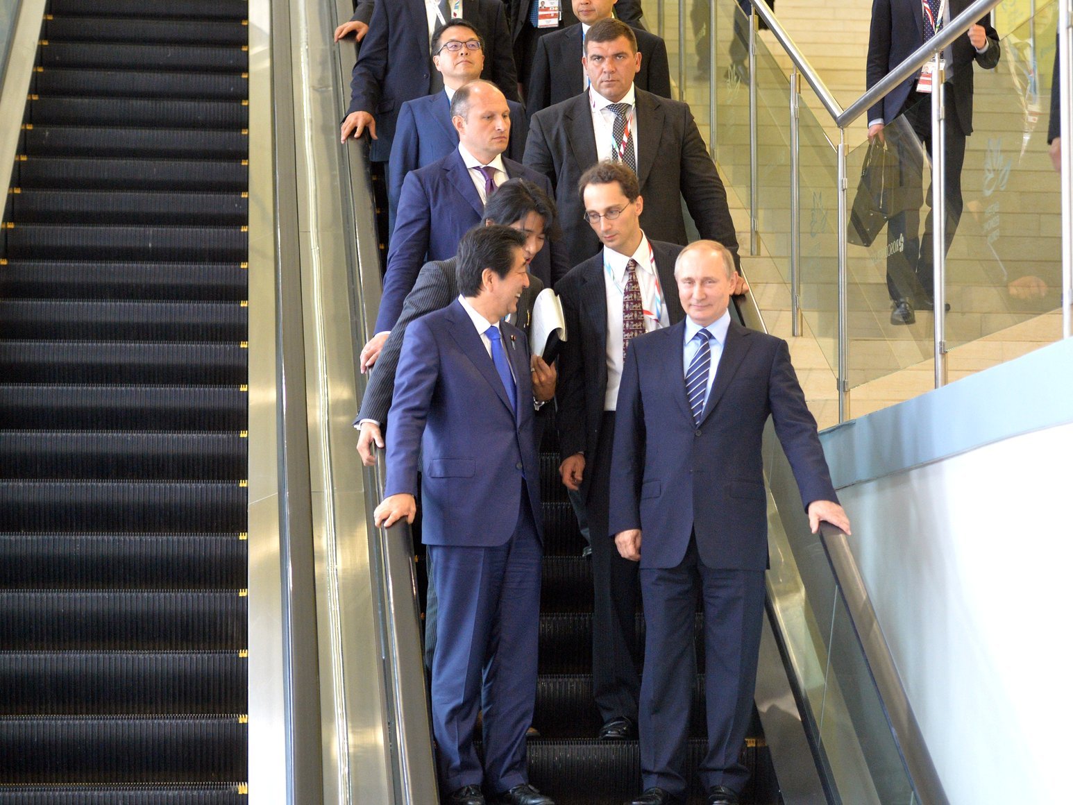 Российский лидер Владимир Путин и премьер-министр Японии Синдзо Абэ в ходе встречи в Токио обменялись презентами, передает ТАСС.