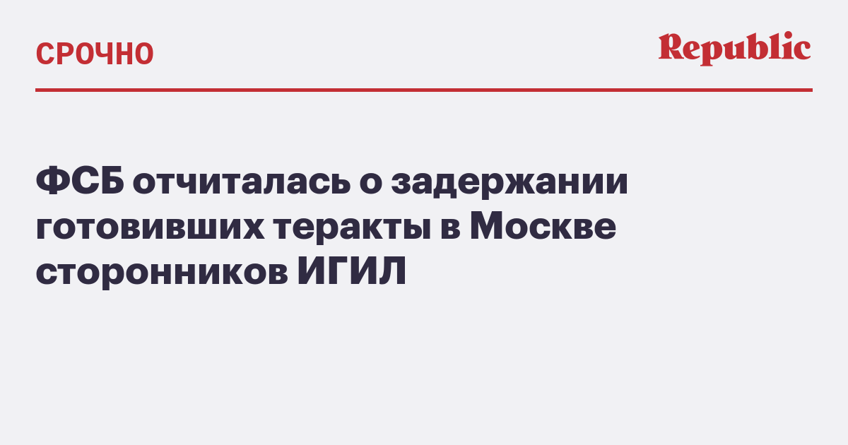 ФСБ отчиталась о задержании готовивших теракты в Москве сторонников ИГИЛ