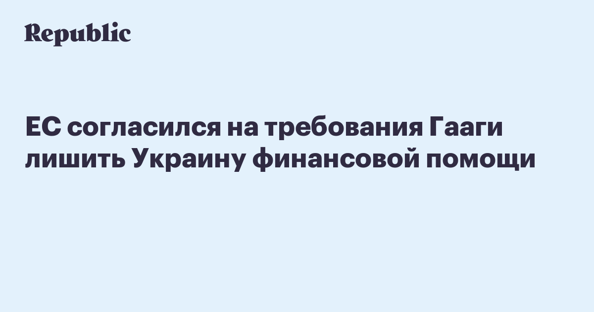 ЕС согласился на требования Гааги лишить Украину финансовой помощи