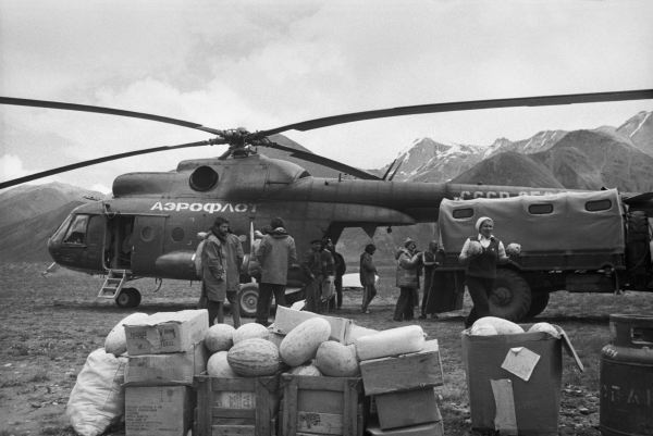Детеныш памирского яка на Восточном Памире.Фото: В. Федянин/Фотохроника ТАСС Помню, как мы грузились в вертолет в душанбинском аэропорту. Все свободное пространство завалили в три слоя — внизу ящики с оборудованием, припасами, потом палатки, спальники, потом мы сами. Пришли пилоты, посмотрели на все это, сказали: «Парни, да вы офигели, мы все это не оторвем». Попытались — не получилось. Пришлось все выгружать и перекладывать в другой вертолет, помощнее. Кое-как долетели до перевала Калаи-Хумб — и резко пошли вниз. Воздух разреженный, мощности не хватает. Сели, пилот говорит — все, ребята, мы в жопе, все на выход. Мы высадились, вертолет снова попытался взлететь — и никак — поэтому медленно поехал в гору прямо по шоссейке и не доехал метров 50 до перевала. А там на сопках была русская станция слежения. Связисты выползли посмотреть, что у нас происходит. А у нас поперек дороги вертолет застрял. Дошли до него — пилот сидит весь бледный, курит, говорит: