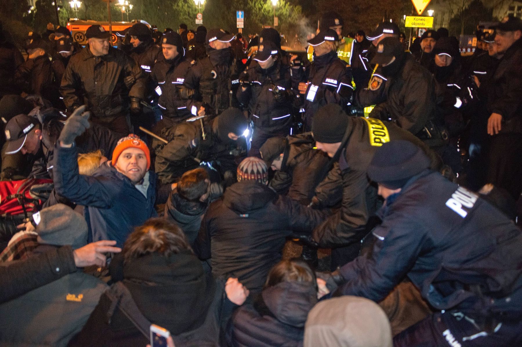 Столкновения полиции и демонстрантов у парламента Польши. Фотография