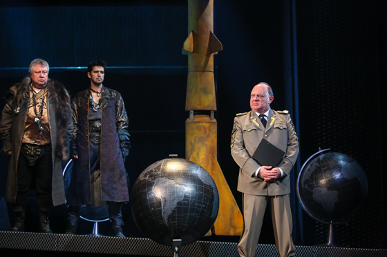 Марк Захаров поставил вольную инсценировку романа Владимира Сорокина «День опричника». В сатире на Россию, которая снова стала великой, реставрированы царизм, порка, опричнина и старославянский язык; истребляются последние препятствия к благоденствию — мат и оппозиция. Заря нового Средневековья занимается на фоне нефтепровода и ржавой ракеты, а русский путь оказывается лентой транспортера, по которой герои бегут вперед, катясь назад. После премьеры в «Ленкоме» c Марком Захаровым встретилась Елена Ковальская.