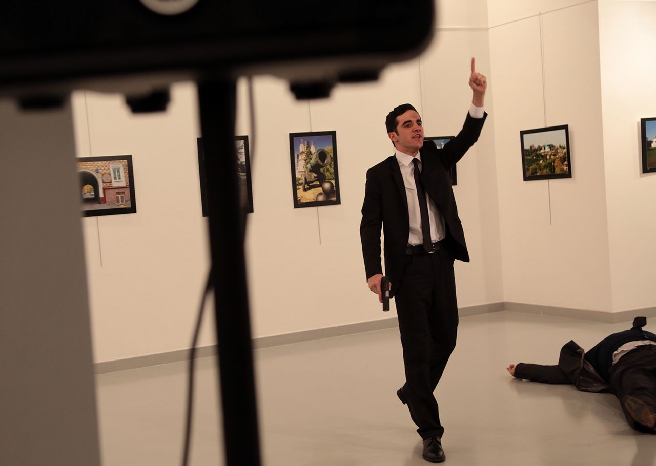 В Андрея Карлова стреляли несколько раз. Российский посол участвовал в церемонии открытия фотовыставки в столице Турции. Черноволосый молодой мужчина, одетый в черный костюм и белую рубашку, достал пистолет и начал стрелять в Карлова. По предварительным данным, еще несколько человек помимо дипломата ранены.